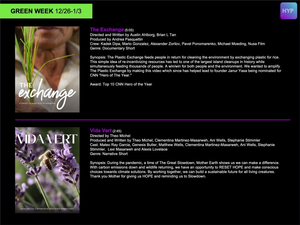 12/28 | Green Week Kick-Off Film Screenings & Kick-Off Party